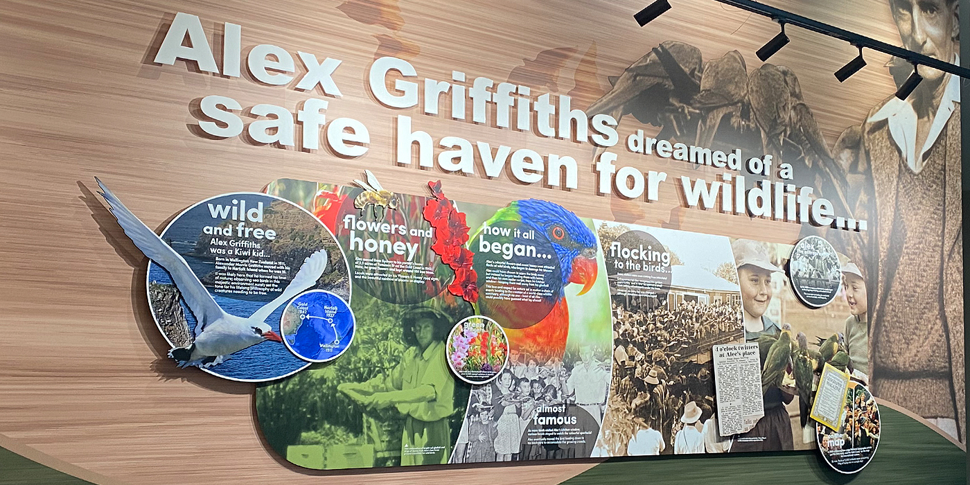 Earthstory produced the 75th Anniversary exhibit for Australia's Currumbin Wildlife Sanctuary on the Gold Coast. Our storytelling centred upon founder Alex Griffiths, and the early years of the Sanctuary's development. The walls are a rich montage of visitors' snapshots over the decades, bringing a personal touch to a much-loved wildlife attraction.