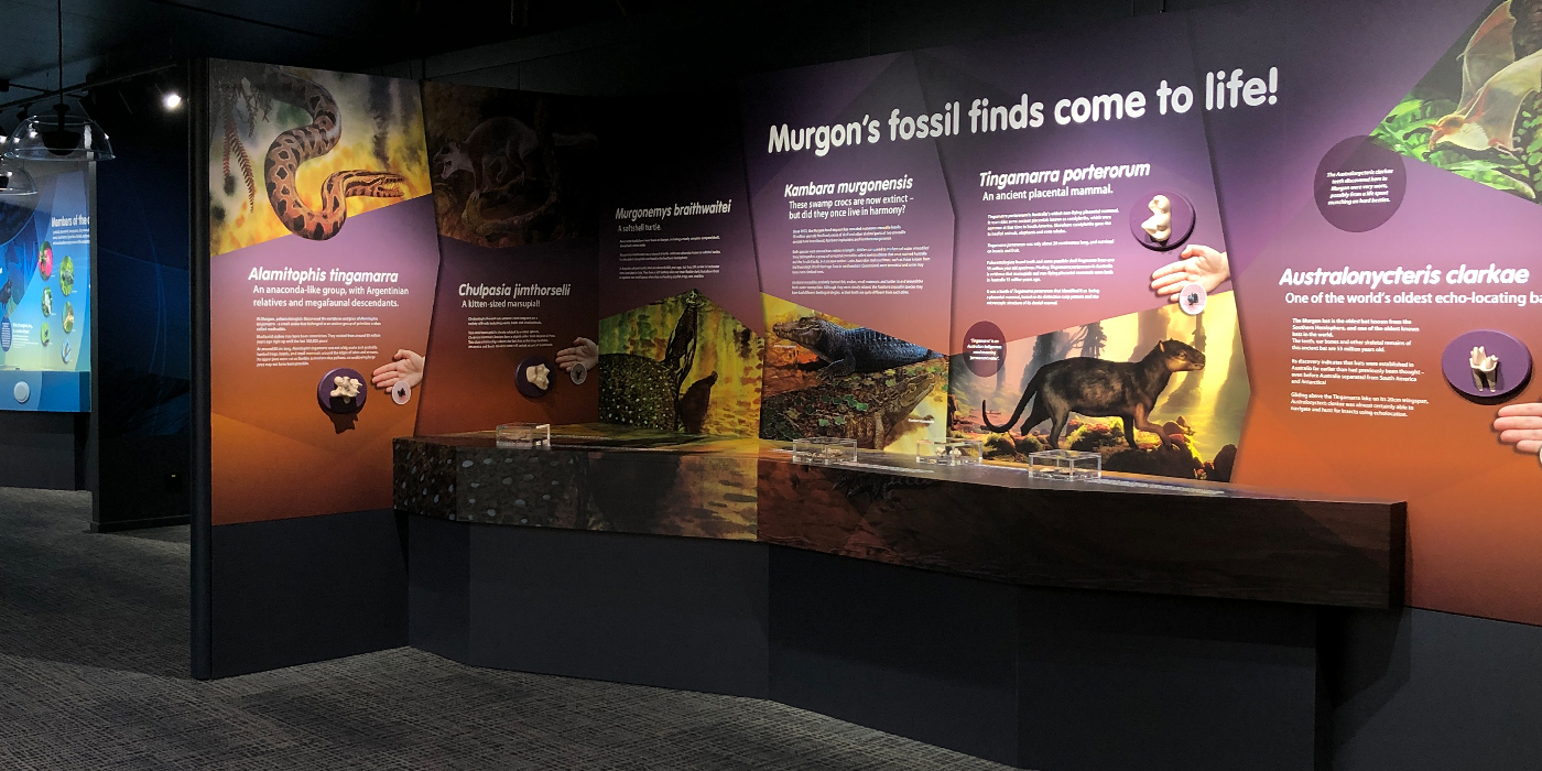 Earthstory concepted, designed, produced and project managed Murgon 55MYA, a unique fossil museum experience rich with graphics, audio-visuals and both real and supersized 3D-printed replica fossils.